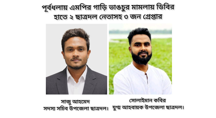 পূর্বধলায় এমপির গাড়ি ভাঙচুর মামলায় দুই ছাত্রদল নেতাসহ আরও ৩ জন ডিবির হাতে গ্রেপ্তার