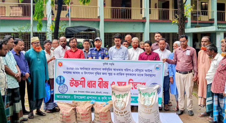 শেরপুরে প্রান্তিক কৃষকদের মাঝে উফশী ধান বীজ ও সার বিতরণ