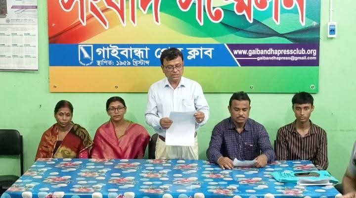 গাইবান্ধায় হিন্দু সম্প্রদায়ের পরিবারের সম্পত্তি দখল করার প্রতিবাদে সংবাদ সম্মেলন