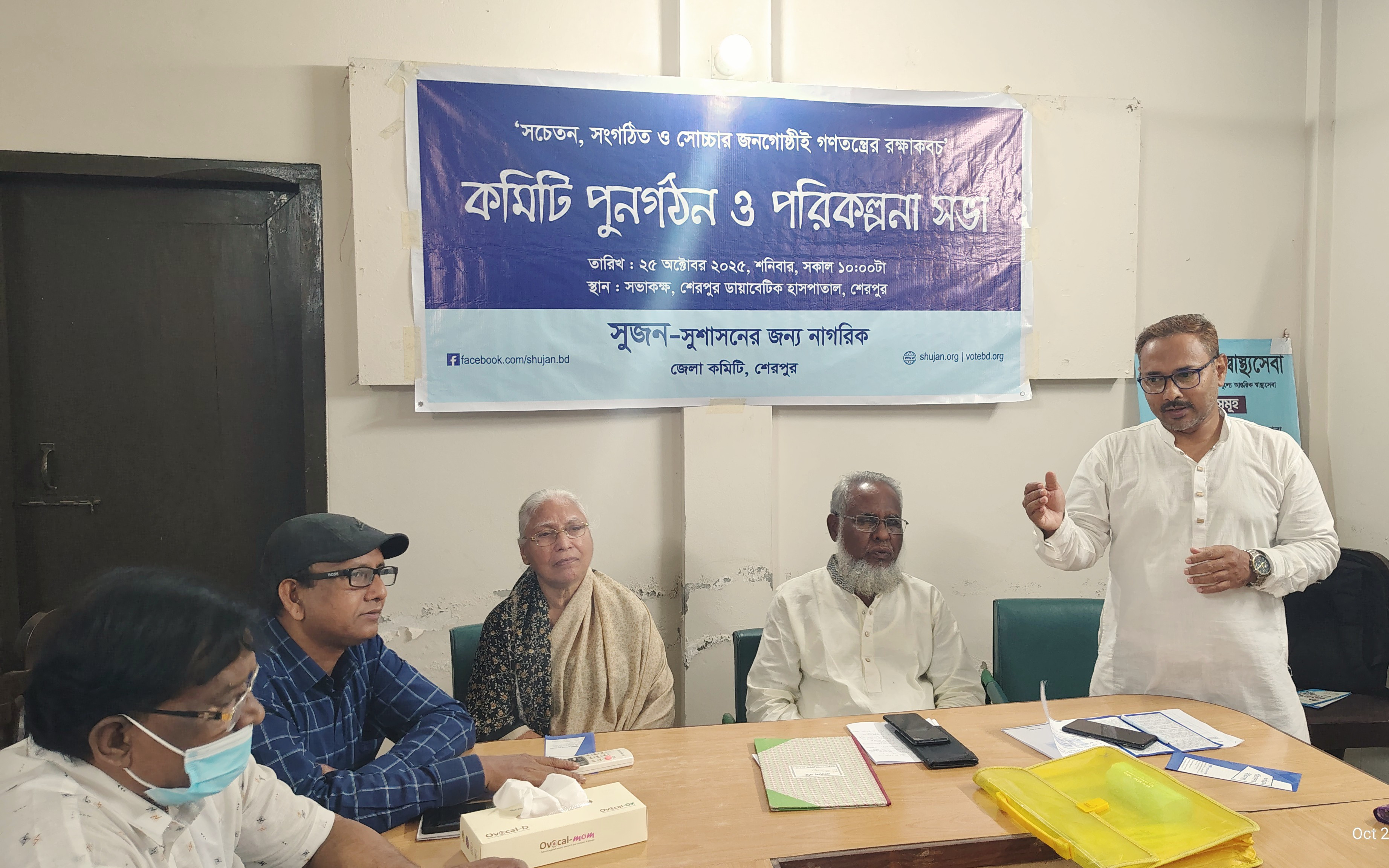 সুশাসনের জন্য নাগরিক “সুজন” এর শেরপুর জেলা শাখা কমিটির পুনর্গঠন ও পরিকল্পনা সভা অনুষ্ঠিত হয়েছে।
