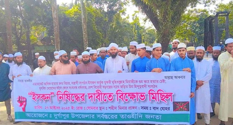 ইসকন নিষিদ্ধের দাবিতে দুর্গাপুরে বিক্ষোভ মিছিল