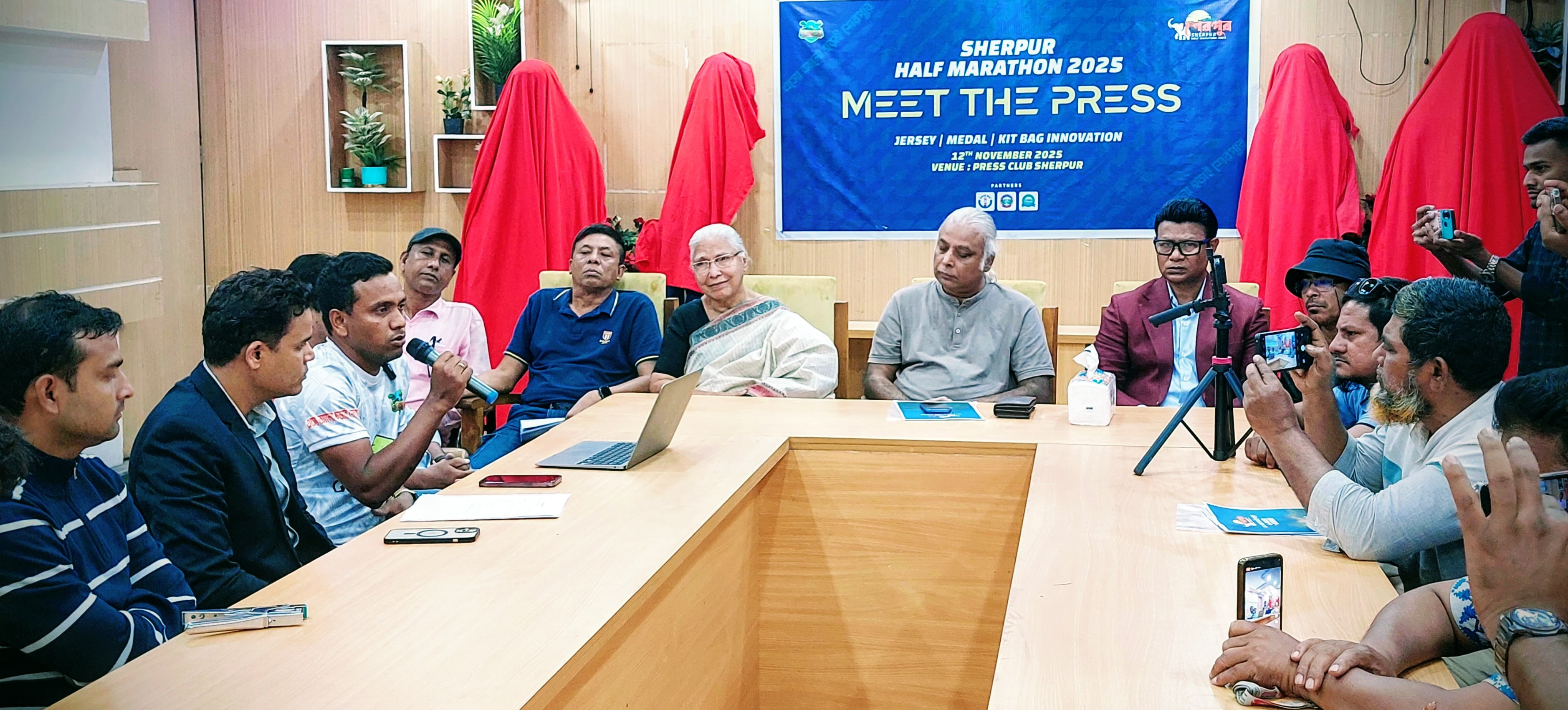 এ উপলক্ষে ১২ নভেম্বর বুধবার সন্ধ্যায় শেরপুর প্রেসক্লাব মিলনায়তনে হাফ ম্যারাথনের জার্সি, মেডেল ও কিটব্যাগ উন্মোচন অনুষ্ঠিত হয়েছে।