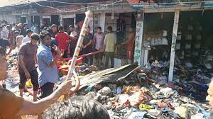নেত্রকোনার মদনে মহিউদ্দিন মার্কেটের কাপড় পট্টিতে আগুন পুড়ে ২৫টি দোকান