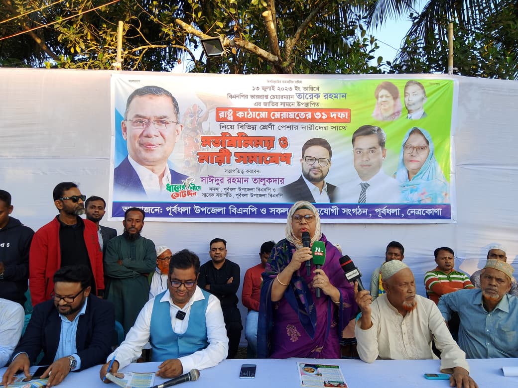 নেত্রকোনার পূর্বধলায় বিএনপির ভারপ্রাপ্ত চেয়ারম্যান তারেক রহমান ঘোষিত ‘রাষ্ট্র কাঠামো মেরামতের ৩১ দফা’ রূপরেখা তৃণমূল পর্যায়ে পৌঁছে দিতে এবং এ বিষয়ে জনমত গঠনে নারীদের নিয়ে এক বিশাল সমাবেশ ও মতবিনিময় সভা অনুষ্ঠিত হয়েছে।