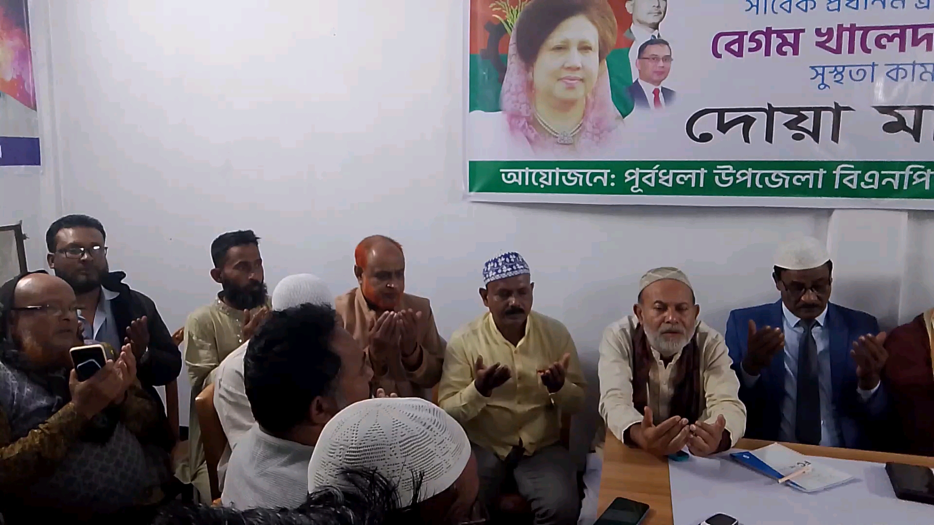 নেত্রকোনার পূর্বধলায় সাবেক প্রধানমন্ত্রী ও বিএনপি চেয়ারপার্সন বেগম খালেদা জিয়ার আশু রোগমুক্তি, সুস্বাস্থ্য ও দীর্ঘায়ু কামনা করে আলোচনা সভা ও দোয়া মাহফিল অনুষ্ঠিত হয়েছে।