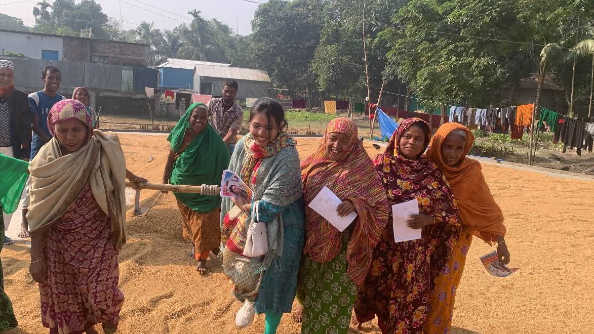 একই গ্রামের কৃষক সাবেদ আলী বলেন, প্রিয়াঙ্কা খেতে যাইয়া ধান কাটছে এইডা দেহি বালা নাগছে। উ (উনি) আঙ্গরের চরের বেডি, আবার হুনলাম ধানের হিছা (শীষ) পাইছে। আমরা তারেই ভুট দিবার চাই।