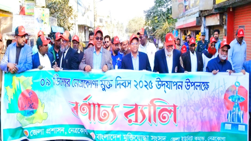 ৯ ডিসেম্বর নেত্রকোনা মুক্ত দিবস উপলক্ষে সকাল ৯টা ৩০ মিনিটের দিকে জেলা মুক্তিযোদ্ধা কমপ্লেক্স থেকে একটি বর্ণাঢ্য আনন্দ র্যালী বের হয়ে জেলা শহরের বিভিন্ন গুরুত্বপূর্ণ সড়ক প্রদক্ষিণ করে জেলা কালেক্টরের ভবন প্রাঙ্গণে প্রজন্ম ৭১ ভাষ্কর্যে শ্রদ্ধা নিবেদন করেন।