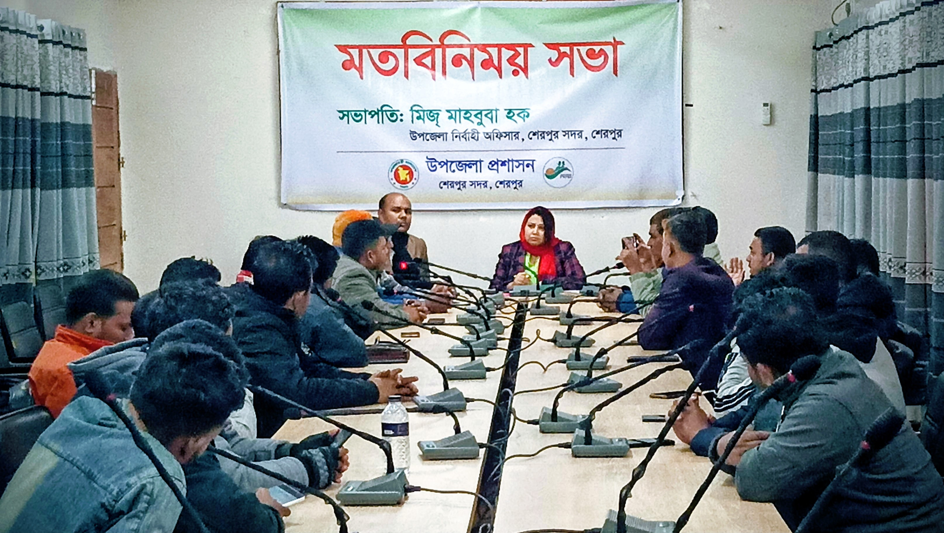 মত বিনিময় সভায় শেরপুরে কর্মরত বিভিন্ন প্রিন্ট ও ইলেকট্রনিক মিডিয়ার সাংবাদিকগণ উপস্থিত ছিলেন।