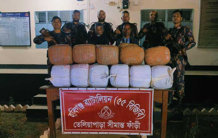 হবিগঞ্জ ব্যাটালিয়ন (৫৫ বিজিবি) মাদক ও চোরাচালান বিরোধী অভিযানে খড় বোঝাই একটি ট্রাক থেকে ১০০ কেজি ভারতীয় গাঁজাসহ দুইজন মাদক পাচারকারীকে আটক করেছে। জব্দকৃত গাঁজার আনুমানিক বাজারমূল্য ৩ লাখ ৭০ হাজার টাকা।