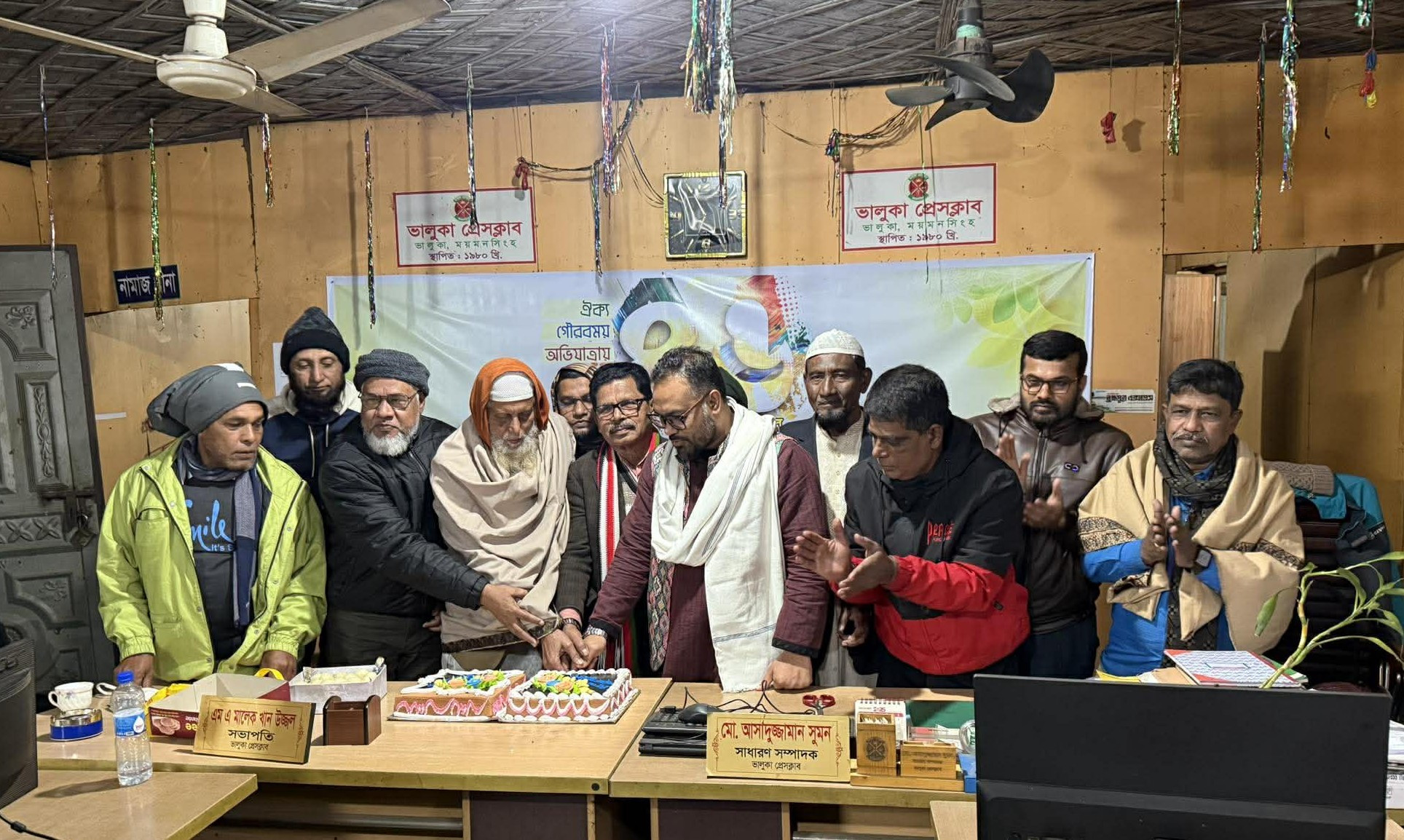 ময়মনসিংহের ঐতিহ্যবাহী সাংবাদিক সংগঠন ভালুকা প্রেসক্লাবের ৪৬তম প্রতিষ্ঠা বার্ষিকী উপলক্ষে কেক কাটা ও শুভেচ্ছা বিনিময় অনুষ্ঠান অনুষ্ঠিত হয়েছে।
