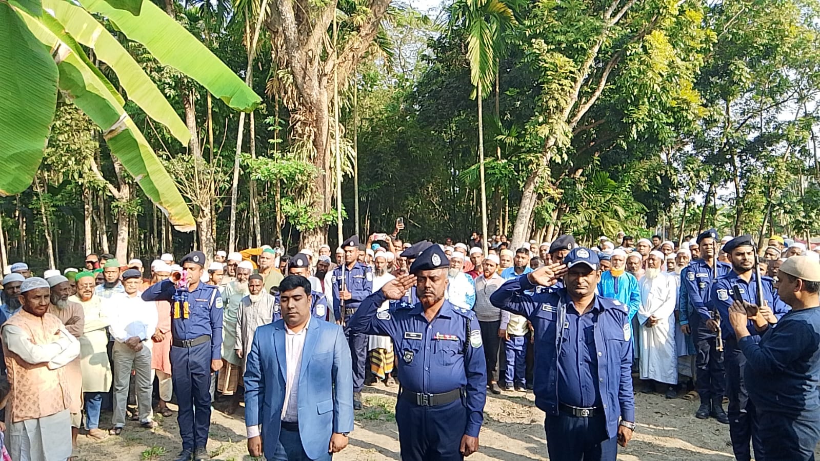 মঙ্গলবার (১৩ জানুয়ারি) দুপুর আড়াইটার দিকে উপজেলার তারাকান্দা গ্রামের নিজ বাড়িতে মরহুমকে গার্ড অব অনার প্রদান করা হয়। এ সময় রাষ্ট্রের পক্ষে সালাম গ্রহণ করেন পূর্বধলা উপজেলা নির্বাহী কর্মকর্তা মো. আনিছুর রহমান খান।