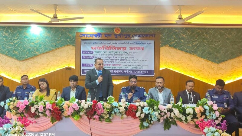 মঙ্গলবার (১৩ জানু:) দুপুরে নেত্রকোনার দুর্গাপুর উপজেলা প্রশাসনের আয়োজনে এ সভা অনুষ্ঠিত হয়।