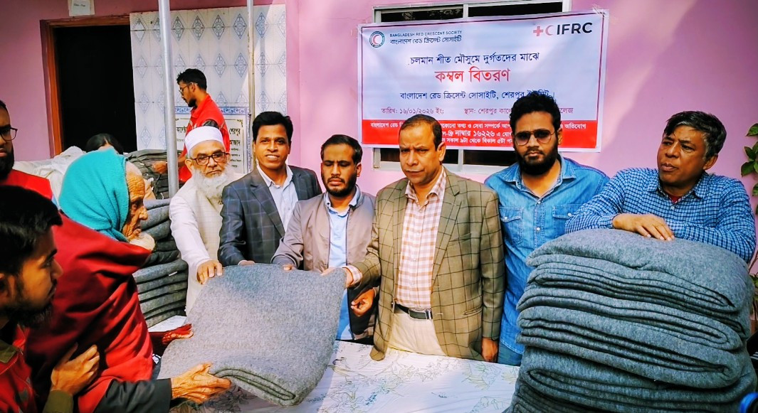 শেরপুর রেড ক্রিসেন্ট সোসাইটির কম্বল বিতরণ