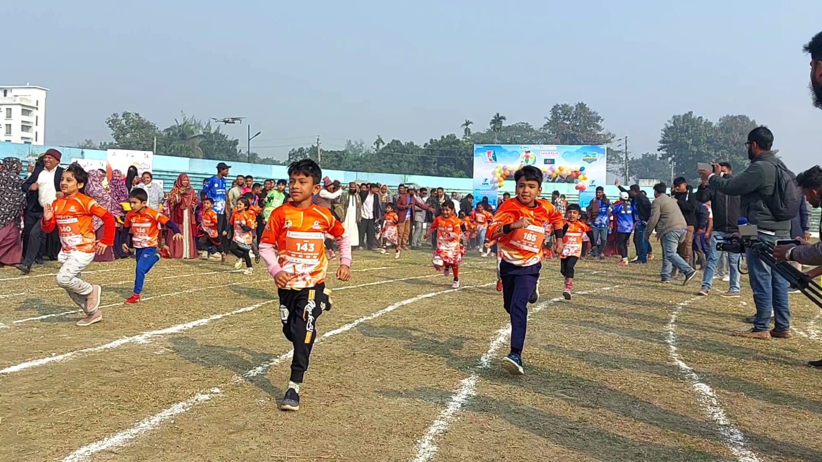 শেরপুরে উৎসবমুখর পরিবেশে শিশুদের ম্যারাথন দৌড় প্রতিযোগিতা