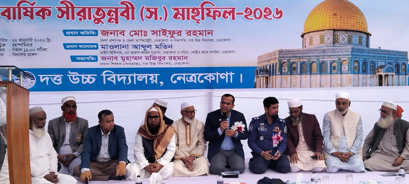 দত্ত উচ্চ বিদ্যালয়ের ভারপ্রাপ্ত প্রধান শিক্ষক মুহাম্মদ মজিবুর রহমানের সভাপতিত্বে মাহফিলে প্রধান অতিথি হিসেবে বক্তব্য রাখেন জেলা প্রশাসক মোঃ সাইফুর রহমান।
