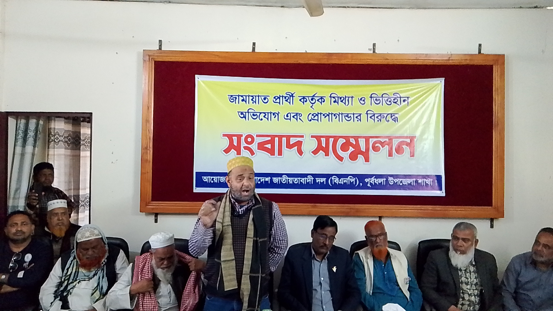 নেত্রকোনার পূর্বধলায় জামায়াত মনোনীত প্রার্থীর তোলা অভিযোগকে ‘মিথ্যা ও ভিত্তিহীন প্রোপাগান্ডা’ দাবি করে সংবাদ সম্মেলন করেছে উপজেলা বিএনপি।