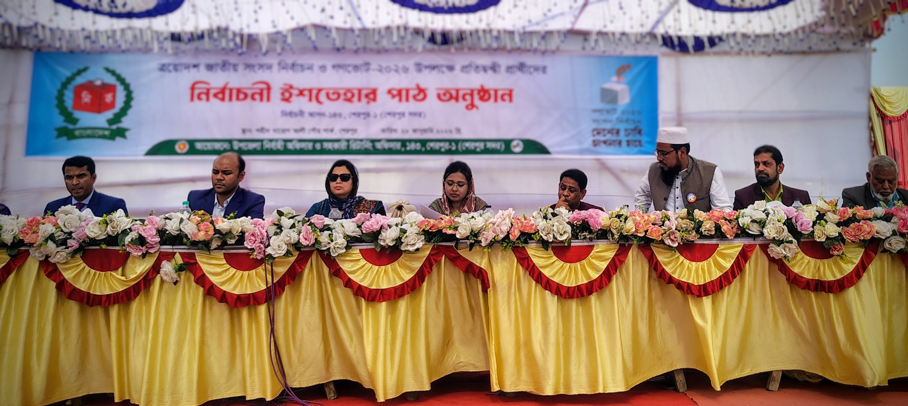 ২৮ জানুয়ারি বুধবার দুপুরে শেরপুর শহরের পৌর দারোগ আলি পৌর পার্কে শেরপুর সদর উপজেলা নির্বাহী কর্মকর্তা ও সহকারী রিটার্নিং অফিসার মাহবুবা হক এর সভাপতিত্বে ইশতেহার পাঠ আয়োজন করা হয়।