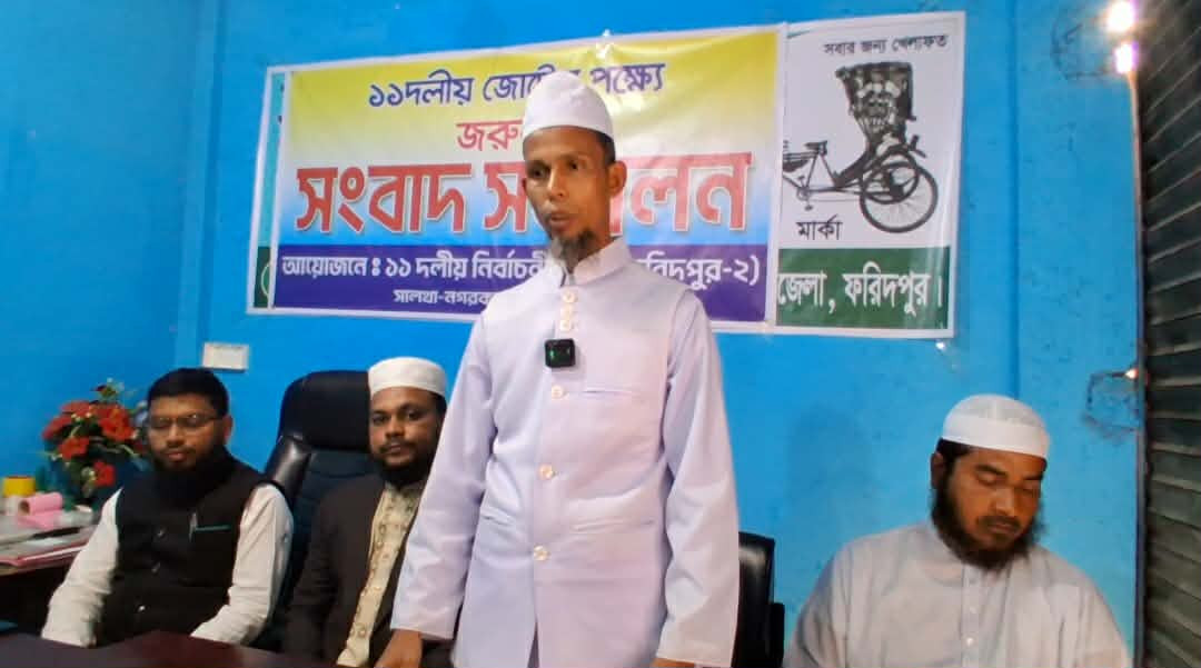 সংবাদ সম্মেলনে ১১ দলীয় জোটের পক্ষ থেকে সালথা উপজেলা জামায়াতের সেক্রেটারি মো. তরিকুল ইসলাম বলেন, ফরিদপুর-২ আসনের ১১ দলীয় জোট মনোননীত প্রার্থী আল্লামা আকরাম আলী হুজুরের পক্ষে ভোট চাওয়ায় আমাদের একজন কর্মীকে হুমকি দেওয়া হয়েছে। এমনটি তাকে চাকরিচ্যুত করা হয়েছে। আমরা ১১ দলের পক্ষ থেকে এই ন্যাক্কারজনক ঘটনার তীব্র নিন্দা ও প্রতিবাদ জানাই।