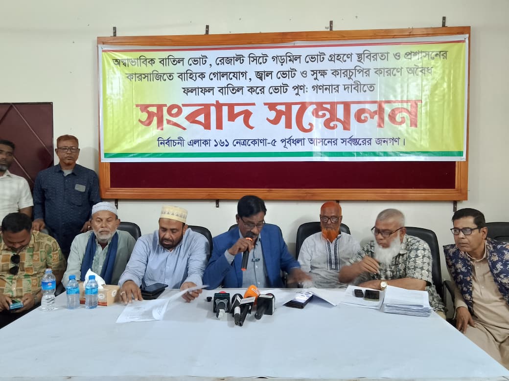 নেত্রকোণা-৫ আসনের ফল বাতিল ও পুনর্গণনার দাবিতে বিএনপির সংবাদ সম্মেলন