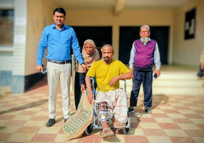 জানা গেছে, উপজেলার নলকুড়া ইউনিয়নের ফাকরাবাদ এলাকার আব্দুর রশিদের ছেলে রফিকুল ইসলাম সড়ক দুর্ঘটনায় আহত হয়ে পঙ্গুত্ববরণ করেন। অর্থাভাবে চলাফেরা করার জন্য একটি হুইল চেয়ার ক্রয় করতে পারেননি রফিকুল ইসলাম। পরে তার আবেদনের পরিপ্রেক্ষিতে উপজেলা প্রশাসনের পক্ষ থেকে একটি হুইল চেয়ার ও এক ব্যাগ খাবার প্রদান করা হয়।