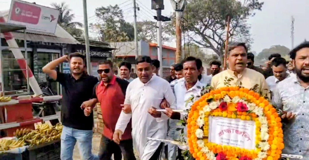 গাইবান্ধায় শহীদ মিনারে পুষ্পস্তবক অর্পণ, দুই আ’লীগ নেতা আটক