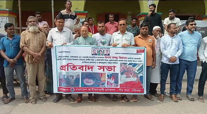 গাইবান্ধায় শ্রমিকদলের নেতা রঞ্জুর ওপর হামলাকারীদের শাস্তির দাবিতে প্রতিবাদ সভা