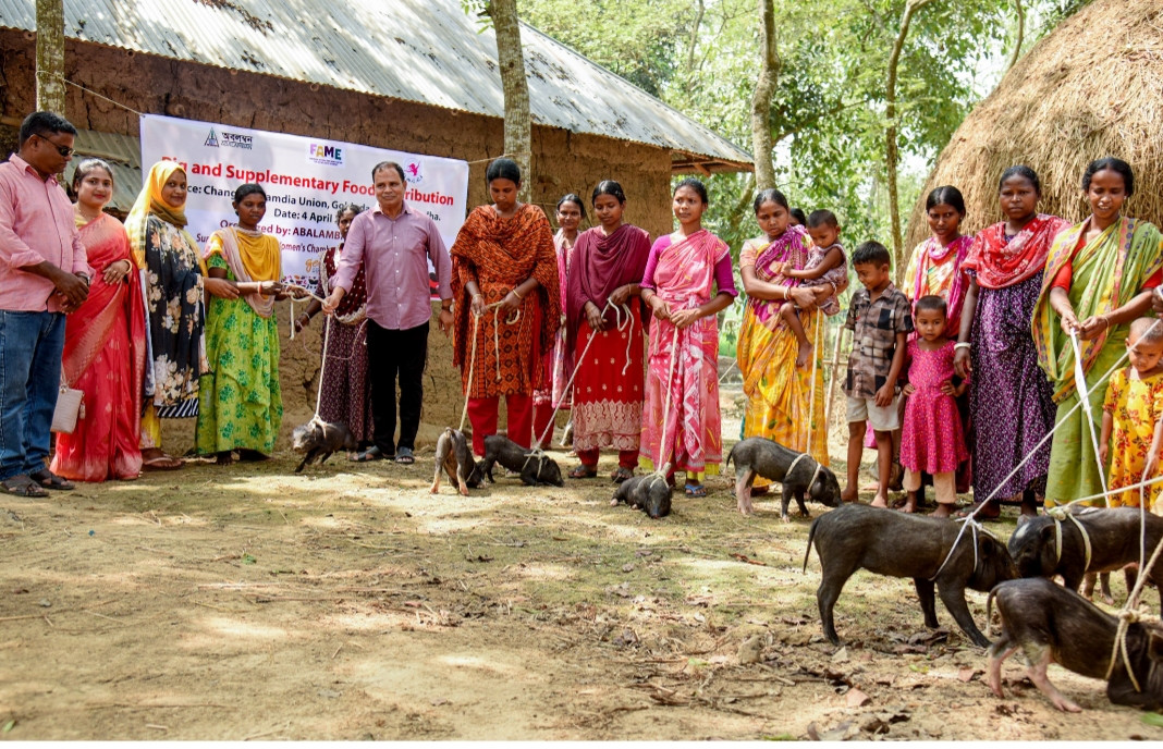 গাইবান্ধায় সাঁওতাল পল্লীতে দরিদ্র পরিবারের মাঝে বিনামূল্যে শুকর বিতরণ