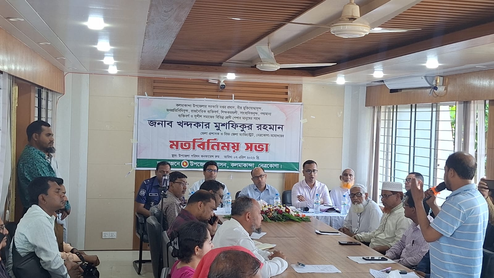 নেত্রকোণার কলমাকান্দায় মঙ্গলবার জেলা প্রশাসক ও বিজ্ঞ জেলা ম্যাজিস্ট্রেট বিভিন্ন পেশাজীবীদের সঙ্গে মতবিনিময় সভা করেছেন। উপজেলা প্রশাসনের উদ্যোগে এ অনুষ্ঠানের আয়োজন করা হয়।