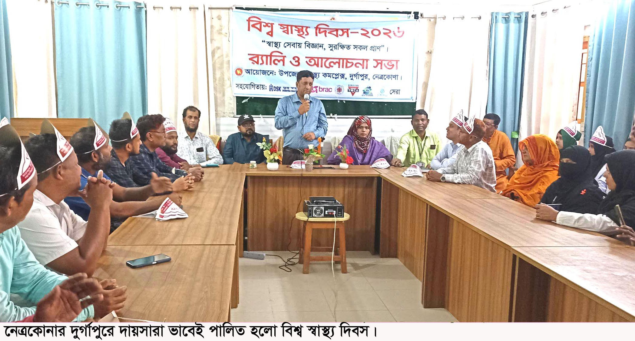 “স্বাস্থ্য সেবায় বিজ্ঞান, সুরক্ষিত সকল প্রাণ” এই প্রতিপাদ্যে, উপজেলা স্বাস্থ্য কমপ্লেক্সের আয়োজনে নেত্রকোনার দুর্গাপুরে দায়সারা ভাবে পালিত হয়েছে বিশ্ব স্বাস্থ্য দিবস।