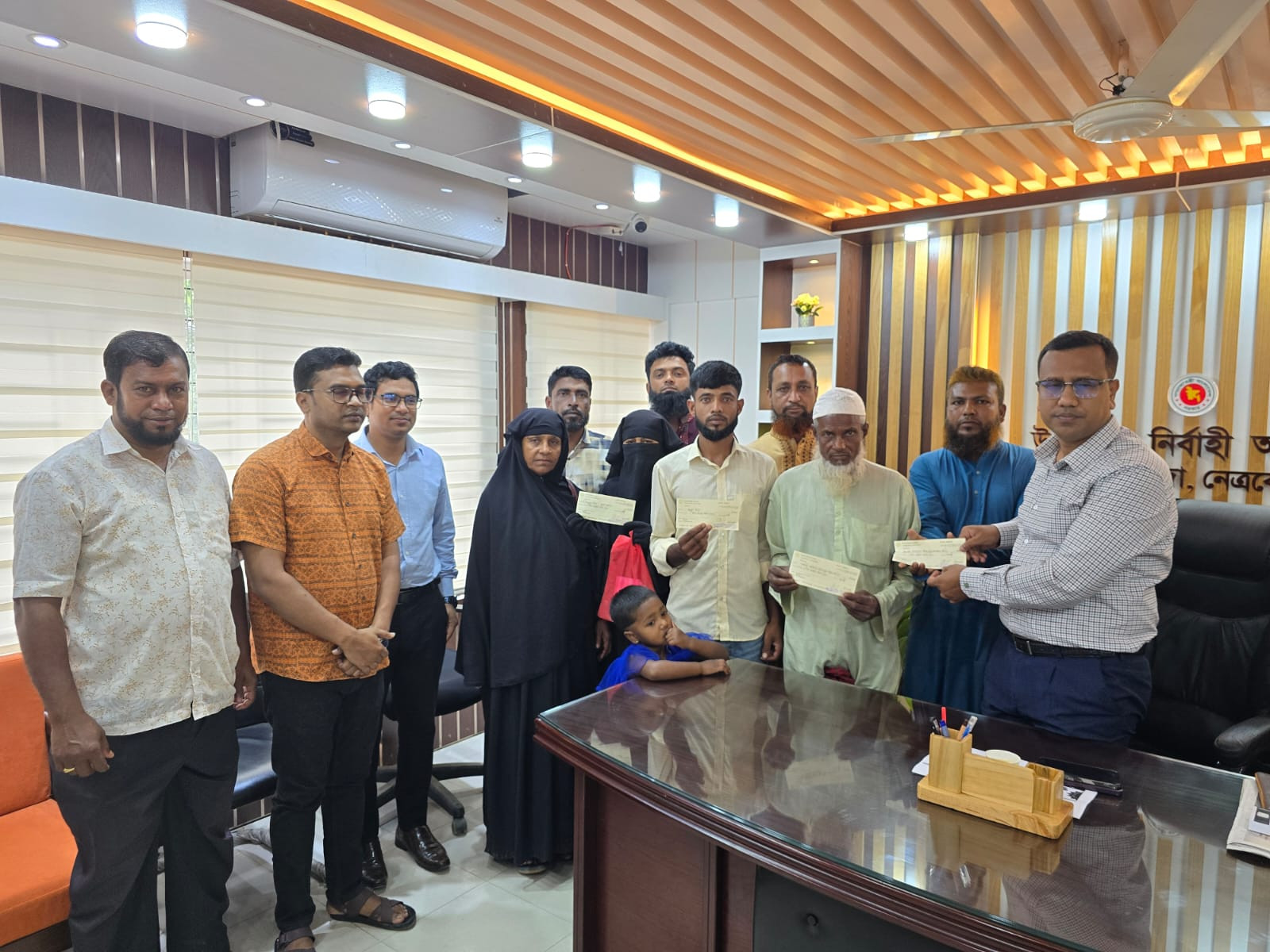 উপজেলা নির্বাহী কর্মকর্তা এস এম মিকাইল ইসলাম ক্ষতিগ্রস্ত ও নিহতদের পরিবারের প্রতিনিধিদের হাতে এসব চেক হস্তান্তর করেন।