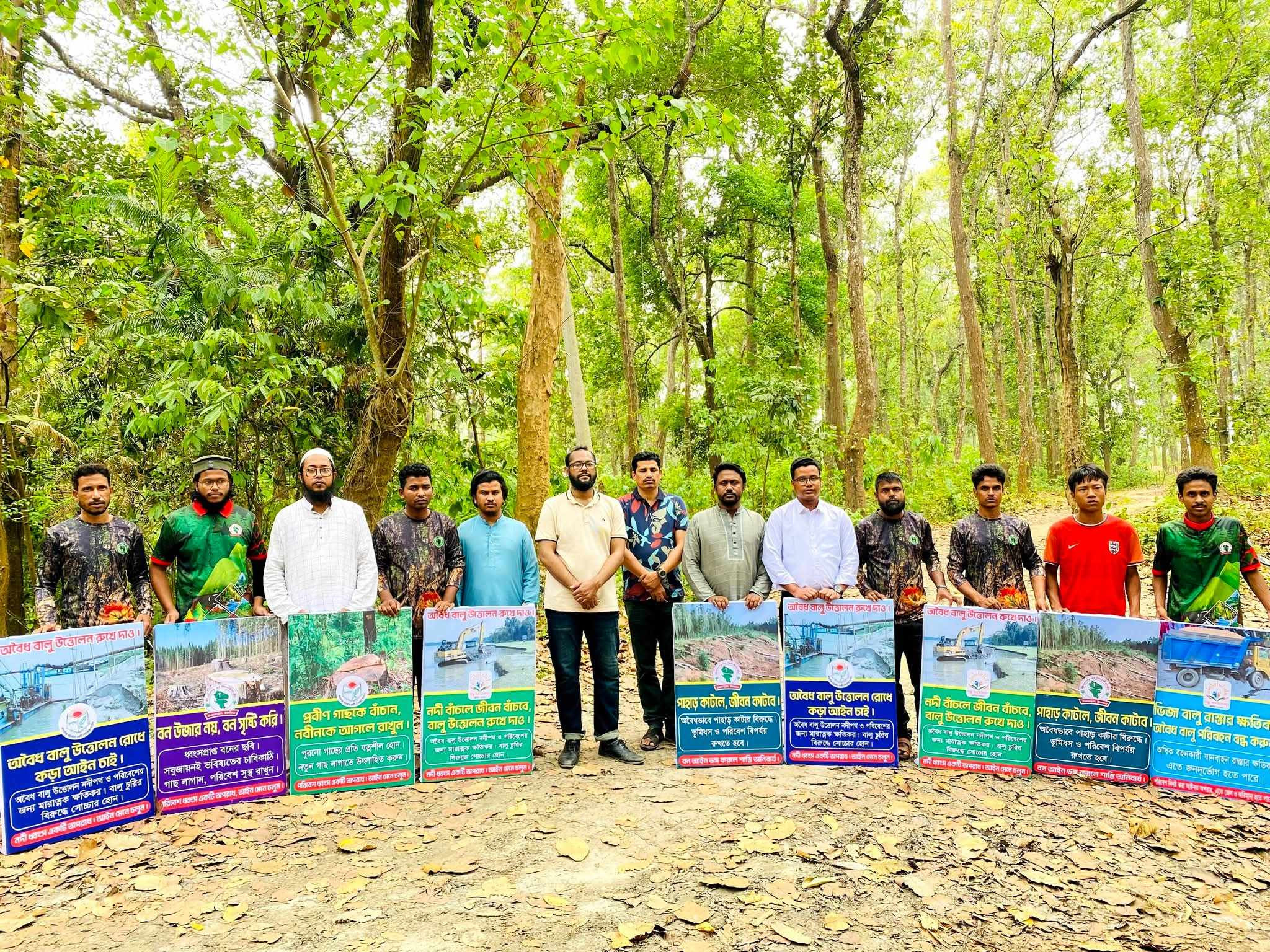 শেরপুরে জীববৈচিত্র্য রক্ষার দাবিতে মানববন্ধন ও ব্যানার স্থাপন