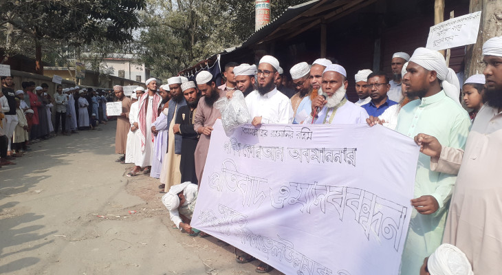পবিত্র আল কোরআনুল কারীম অবমাননার প্রতিবাদে মানববন্ধন