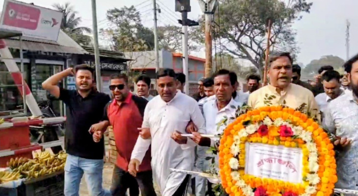 গাইবান্ধায় শহীদ মিনারে পুষ্পস্তবক অর্পণ, দুই আ’লীগ নেতা আটক