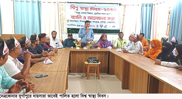 নেত্রকোনায় বিআরটিসি বাসে সেবার মান উন্নয়ন, যাত্রী হয়রানি বন্ধের দাবিতে মানববন্ধন