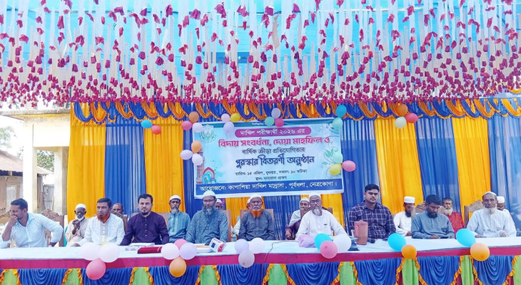 নেত্রকোনার পূর্বধলা উপজেলার ঐতিহ্যবাহী কাপাশিয়া দাখিল মাদ্রাসায় ২০২৬ সালের দাখিল পরীক্ষার্থীদের বিদায় সংবর্ধনা, বার্ষিক ক্রীড়া প্রতিযোগিতার পুরস্কার বিতরণী ও অভিভাবক সমাবেশ সম্পন্ন হয়েছে। বুধবার (১৫ এপ্রিল) মাদ্রাসা প্রাঙ্গণে আয়োজিত এই অনুষ্ঠানে শিক্ষার্থীদের মেধার স্বীকৃতি ও বিদায়ী পরীক্ষার্থীদের উজ্জ্বল ভবিষ্যৎ কামনায় দোয়া
