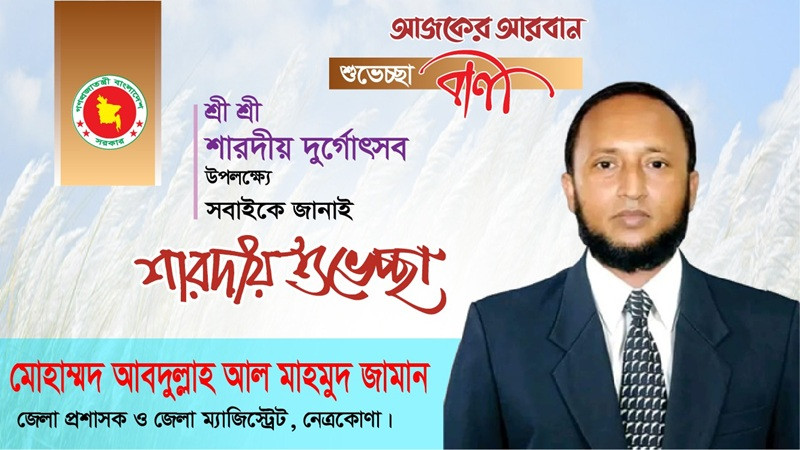 শরতের শুভক্ষণে শারদীয় দুর্গোৎসব উপলক্ষে সনাতন ধর্মাবলম্বীদের প্রতি নেত্রকোণা জেলা প্রশাসকের প্রাণঢালা শুভেচ্ছা