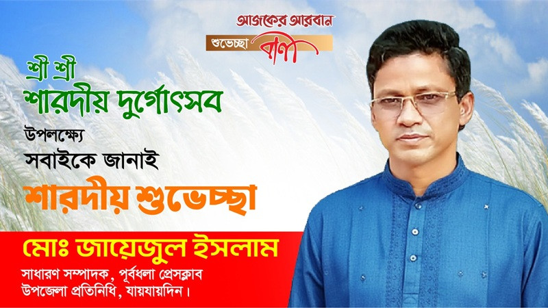 শারদীয় দুর্গোৎসব উপলক্ষ্যে পূর্বধলা প্রেসক্লাবের সাধারণ সম্পাদক মো: জায়েজুল ইসলামের পক্ষ থেকে শুভেচ্ছা