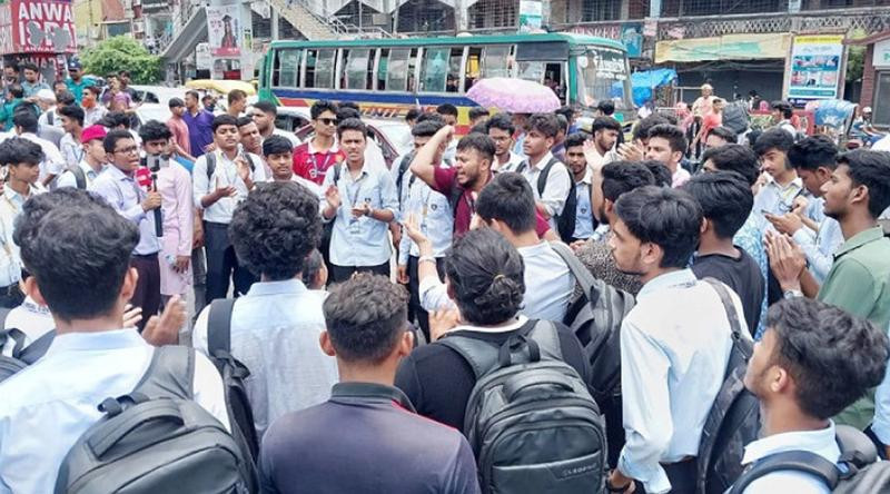 ‘ঢাকা সেন্ট্রাল ইউনিভার্সিটি আইন–২০২৫’ সংশোধনের দাবি এবং সোমবার ঢাকা কলেজের শিক্ষক-শিক্ষার্থীদের মধ্যে হাতাহাতির ঘটনার প্রতিবাদে সায়েন্সল্যাব মোড় অবরোধ করেছেন ঢাকা কলেজের উচ্চমাধ্যমিকের শিক্ষার্থীরা।