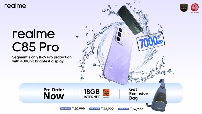 পানিতে ৬০ দিন টিকে থাকার সক্ষমতা ও উজ্জ্বলতম ডিসপ্লেসহ রিয়েলমি সি৮৫ প্রো উন্মোচন