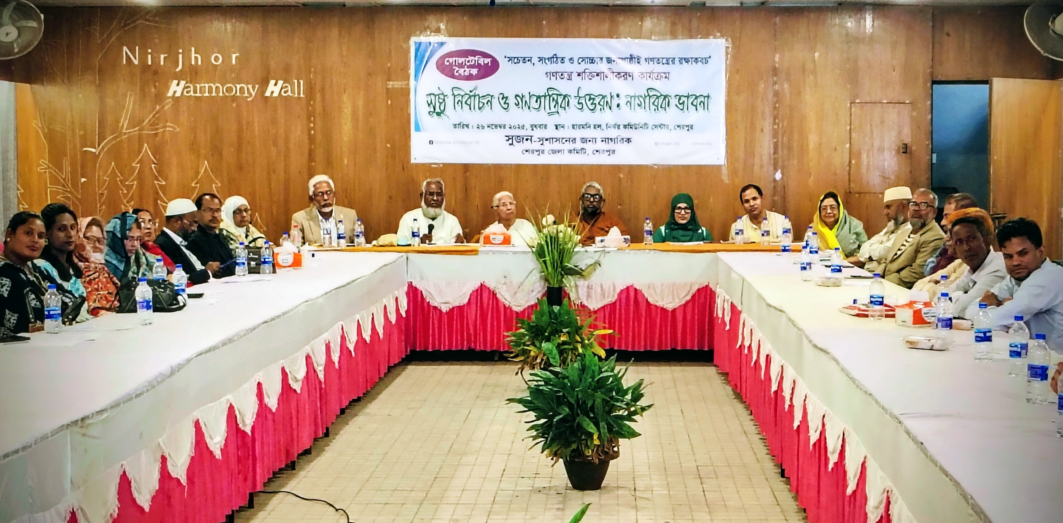 শেরপুরে সুষ্ঠু নির্বাচন ও গণতান্ত্রিক উত্তরায়ন: নাগরিক ভাবনা শীর্ষক গোলটেবিল বৈঠক অনুষ্ঠিত হয়েছে।