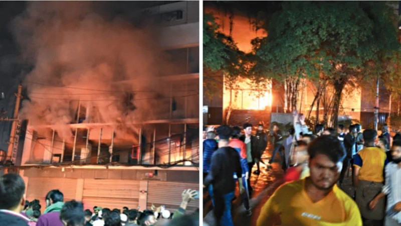 প্রথম আলো ও ডেইলি স্টার ভবনে হামলা, আগুন