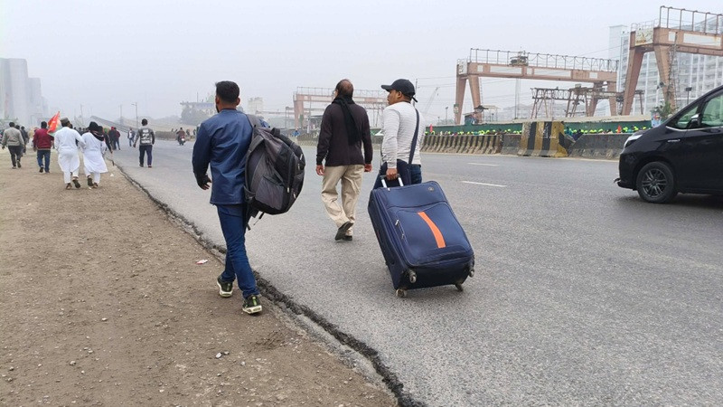 মাথায় মালামাল নিয়ে হাঁটতে থাকা ফিরোজ বলেন, নরসিংদী যাব কিন্তু কোনো বাস খুঁজে পাচ্ছি না। বিমানবন্দরের সামনে দেখলাম সব বাস রিজার্ভ করা। আপাতত হেঁটে সামনে যাচ্ছি। দেখি কোনো ব্যবস্থা করতে পারি কিনা। ভোগান্তি তো হচ্ছেই, না হলে তো আর মালামাল মাথায় নিয়ে যেতে হতো না।