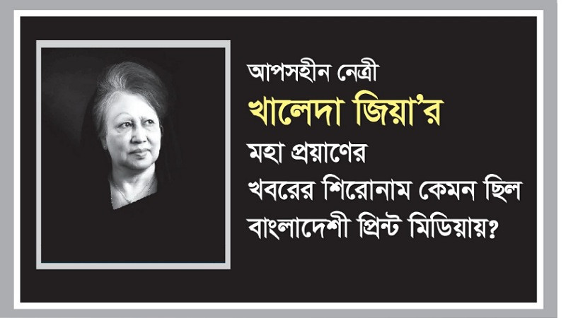 এই মহীয়সী নারীর মহাপ্রয়াণে আজ কাঁদছে সারা দেশ। গত ৩০ ডিসেম্বর ভোর ৬টায় তিনি শেষ নিঃশ্বাস ত্যাগ করেন। ইন্না-লিল্লাহ ওয়া ইন্নাইলাইহি রাজিউন। তাঁর মৃত্যুতে একদিনের সাধারণ ছুটিসহ তিনদিনের রাষ্ট্রীয় শোক পালিত হচ্ছে।। ৩১ ডিসেম্বর অনুষ্ঠিত জানাজায় মানুষের ঢল নামে। এ যেন জনমানুষের মহাসমুদ্র। শেষ বিদায়ের প্রতিটি মুহুর্তই যেন এক একটি ইতিহাস। এই ইতিহাস লেখার স্বর্নাক্ষর গুলি কেমন ছিল পত্রিকার পাতার? বেগম খালেদা জিয়ার মৃত্যুর খবরটি দেশ বিদেশের গণমাধ্যমগুলো অনেক গুরুত্ব সহকারে তুলে ধরেছে। অধিকাংশ পত্রিকার প্রথম পাতার পুরো কাগজ জুড়েই যেমন ছিল খবরের শিরোনাম, তেমনি পুরোপত্রিকায় তাঁর বর্ণাঢ্য জীবনী তুলে ধরে বিশেষ প্রতিবেদন প্রকাশিত হয়। দেশের প্রধান প্রধান গণমাধ্যমসহ উল্লেখযোগ্য পত্রিকার শিরোনামগুলো তুলে ধরা হলো।