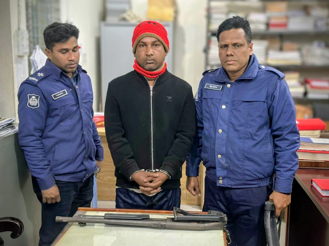 শেরপুরে যৌথ বাহিনীর অভিযানে চিহ্নিত সন্ত্রাসী আটক, পুলিশের লুট হওয়া শর্টগান উদ্ধার