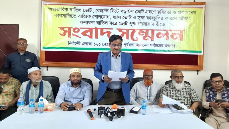 ত্রয়োদশ জাতীয় সংসদ নির্বাচনে ১৬১, নেত্রকোণা-৫ (পূর্বধলা) আসনে ব্যাপক অনিয়ম, কারচুপি ও প্রশাসনিক হস্তক্ষেপের অভিযোগ তুলে ফলাফল বাতিল ও সব কেন্দ্রের ভোট পুনর্গণনার দাবি জানিয়েছে পূর্বধলা উপজেলা বিএনপি।