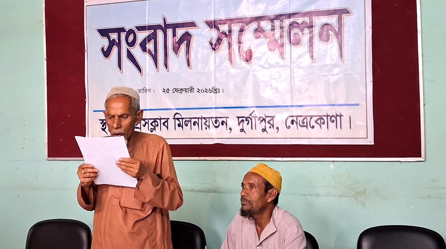সংবাদ সম্মেলনে লিখিত বক্তব্যে সমিতির কর্মকর্তাগণ স্থানীয় সাংবাদিকদের জানান, ২০২৫ সনের ১৩ এপ্রিল তারিখে উপজেলা ভুমি অধিদপ্তরের কাছ থেকে দুর্গাপুর উপজেলার গাঁওকান্দিয়া ইউনিয়নের জলমহালের আওতায় ইজারায় অংশগ্রহনের মাধ্যমে তিন বছরের জন্য ১টি পুকুর ইজারা নেন। পরবর্তিতে স্থানীয় গাঁওকান্দিয়া জামে মসজিদকে পুকুরের তিন ভাগের এক ভাগ লভাংশ দেয়া হবে বলেও এক লিখিত চুক্তিপত্র হয়। চুক্তিপত্রে ওই মসজিদের সাধারণ সম্পাদক আবু সিদ্দিক সহ আরো ৫জন স্বাক্ষর করেন। পরবর্তিতে স্থানীয় একটি কুচক্রীমহল, এনটিভি অনলাইনের পুর্বধলা উপজেলা প্রতিনিধি ও দুর্গাপুর উপজেলার সাংবাদিক ওয়ালী হাসান কলির নেতৃত্বে আরো কয়েকজন সাংবাদিক মিলে গত ২৩ ফেব্রুয়ারী ২০২৬খ্রি: তারিখে এনটিভি অনলাইন সহ কয়েকটি নিউজ পোর্টালে এক নিউজ প্রকাশ করিয়েছে, নিউজে যাদের নাম প্রকাশ করা হয়েছে তারা আদৌ এই পুকুরের কোনরুপ কার্যক্রমের সাথে জড়িত নহে। প্রকাশিত সংবাদটি সম্পুর্ন মিথ্যা, বানোয়াট ও ভিত্তিহীন। আমি এই ভিত্তিহীন সংবাদ প্রকাশের বিরুদ্ধে তীব্র নিন্দা ও প্রতিবাদ জানাচ্ছি। সেইসাথে স্থানীয় সংসদ সদস্য ও ভুমি বিষয়ক প্রতিমন্ত্রী ব্যারিস্টার কায়সার কামাল এবং উপজেলা প্রশাসনের কাছে বিচার প্রার্থনা করেন মৎস্যজীবীগণ।