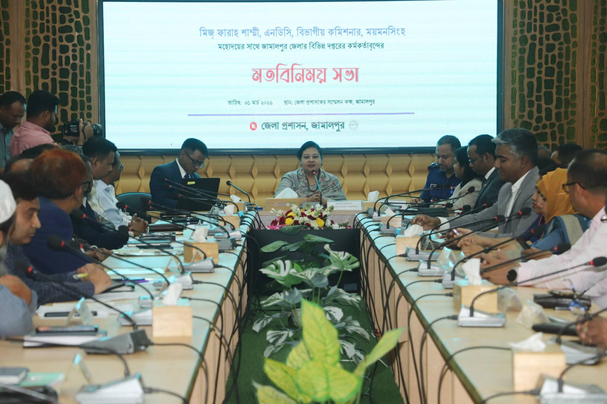 রবিবার (০১ মার্চ ২০২৬ খ্রি.) জামালপুর জেলা প্রশাসকের কার্যালয় সম্মেলন কক্ষে মতবিনিময় সভায় উপস্থিত ছিলেন ময়মনসিংহ বিভাগীয় কমিশনার এনডিসি মিজ্ ফারাহ শাম্মী মহোদয়।