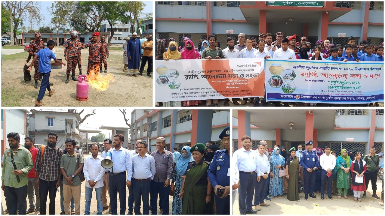 “দুর্যোগ প্রস্তুতিতে লড়ব, তারুণ্যের বাংলাদেশ গড়ব” স্লোগানকে সামনে রেখে নেত্রকোনার পূর্বধলা উপজেলায় জাতীয় দুর্যোগ প্রশমন প্রস্তুতি দিবস উপলক্ষে দুর্যোগ ঝুঁকি হ্রাসে সচেতনতা বৃদ্ধির লক্ষ্যে বর্ণাঢ্য র্যালি, আলোচনা সভা ও অগ্নিনির্বাপণ মহড়া অনুষ্ঠিত হয়েছে।