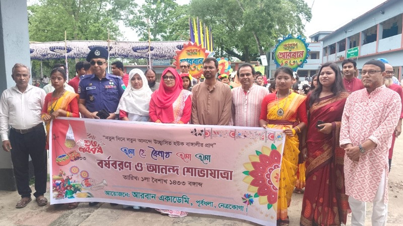 নেত্রকোণার পূর্বধলায় আরবান একাডেমিতে বাংলা নববর্ষ ১৪৩৩ উদযাপন উপলক্ষে বর্ণাঢ্য ও উৎসবমুখর আয়োজন অনুষ্ঠিত হয়েছে।