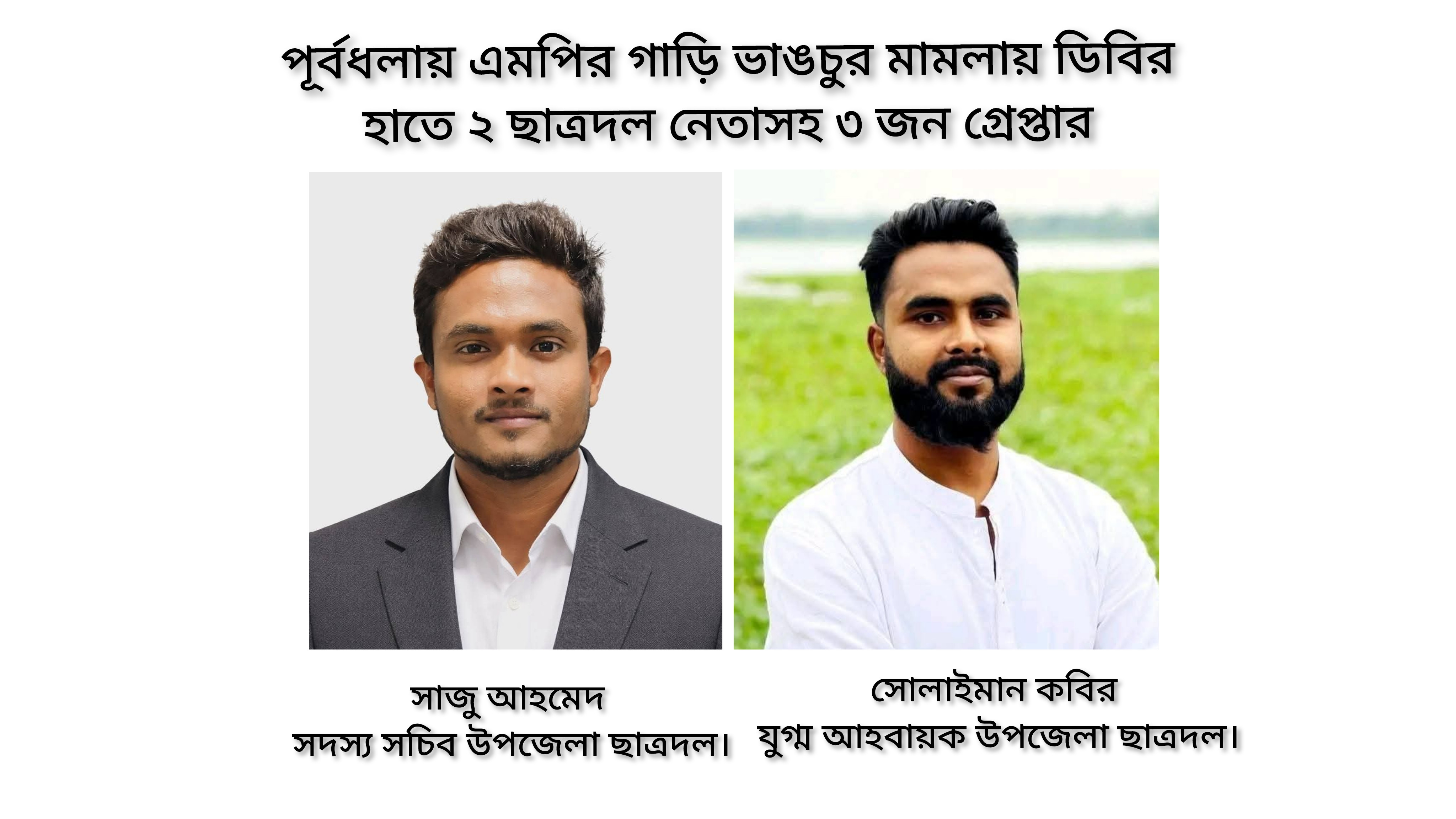 পূর্বধলায় এমপির গাড়ি ভাঙচুর মামলায় দুই ছাত্রদল নেতাসহ আরও ৩ জন ডিবির হাতে গ্রেপ্তার